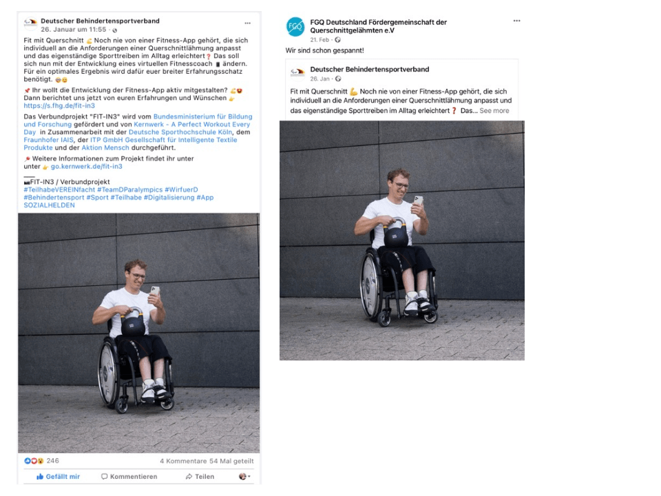 Für die initiale App-Entwicklung brauchen wir feste Parameter, mit denen wir arbeiten können. Eine Querschnittlähmung ist sehr komplex und die Restfunktionen sind auch bei gleicher Querschnitthöhe sehr unterschiedlich. Dies stellt uns in der Entwicklung einer Fitness-App, die ein genau zugeschnittenes Training für jede/n einzelne/n Nutzer*in anbieten soll, vor eine große Herausforderung. Deswegen fangen wir „klein“ an und beginnen mit den Aspekten einer Paraplegie, jedoch mit dem Ziel das Angebot nach und nach auch für Tetraplegiker*innen zu erweitern. Wir gehen jedoch davon aus, dass die App schon zu Beginn für viele Rollstuhlfahrende besser nutzbar sein wird, als herkömmliche Fitness-Apps.